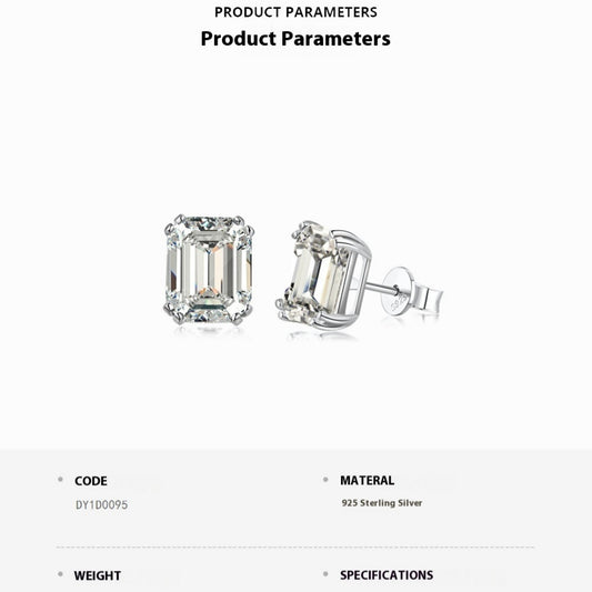925 Sterling Silver Emerald Cut Stud Earrings Ornament