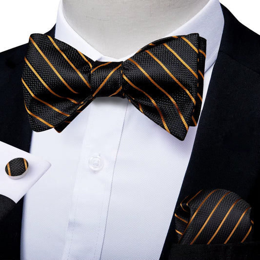 Adjustable Bowties Gold Floral Self Tie Bow Tie Set Pocket Square Wedding Tuxedo Cravat Bow Tie Formal Male Neckwear